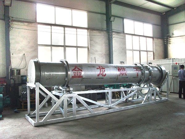 干燥的濕物料由皮帶輸送機或斗式提升機送到料斗,然后經料斗的加料機通過加料管道進入加料端。加料管道的斜度要大于物料的自然傾角,以便物料順利流入干燥器內。干燥器圓筒是一個與水平線略成傾斜的旋轉圓筒。物料從較高一端加入,載熱體由低端進入,與物料成逆流接觸,也有載熱體和物料一起并流進入筒體的。隨著圓筒的轉動物料受重力作用運行到較底的一端。濕物料在筒體內向前移動過程中,直接或間接得到了載熱體的給熱,使濕物料得以干燥,然后在出料端經皮帶機或螺旋輸送機送出。在筒體內壁上裝有抄板,它的作用是把物料抄起來又撒下,使物料與氣流的接觸表面增大,以提高干燥速率并促進物料前進。載熱體一般分為熱空氣、煙道氣等。載熱體經干燥器以后,一般需要旋風除塵器將氣體內所帶物料捕集下來。如需進一步減少尾氣含塵量,還應經過袋式除塵器或濕法除塵器后再放排放。